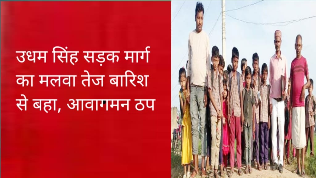 उधम सिंह सड़क मार्ग का मलवा तेज बारिश से बहा, आवागमन ठप