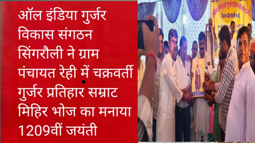 ऑल इंडिया गुर्जर विकास संगठन सिंगरौली ने ग्राम पंचायत रेही में चक्रवर्ती गुर्जर प्रतिहार सम्राट मिहिर भोज का मनाया 1209वीं जयंती