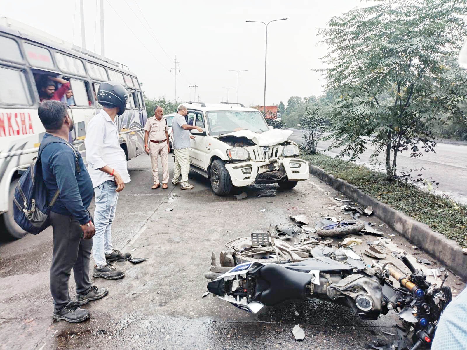 बाईक व स्कॉर्पियों की आमने सामने हुई भिड़ंत, तीन घायल
