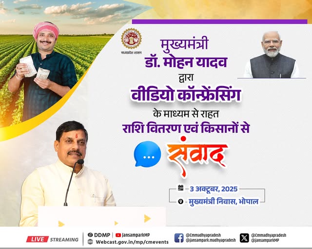 मुख्यमंत्री डॉ. मोहन यादव द्वारा वीडियो कॉन्फ्रेंसिंग के माध्यम से राहत राशि वितरण एवं किसानों से संवाद