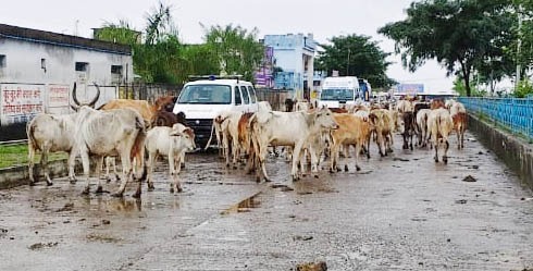 ट्रामा सेंटर के सामने वाले सड़क में सैकड़ों मवेशियों का कब्जा