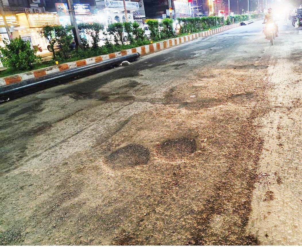 जिला एवं सत्र न्यायालय के सामने व कॉलेज एवं बिलौंजी तिराहा की सड़क में गड्ढे ही गड्ढे, पैदल चलना भी आसान नही