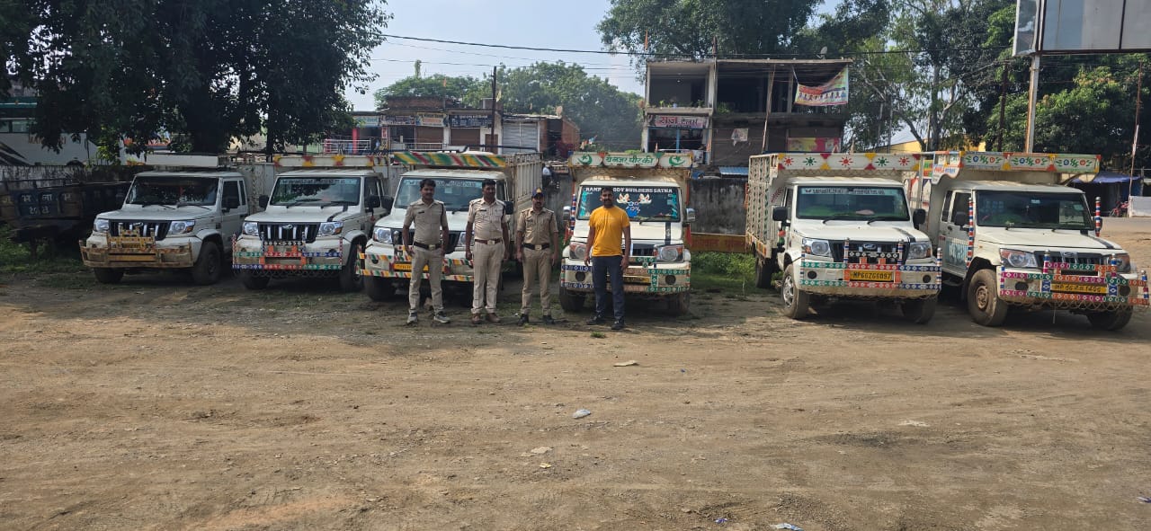 जियावन पुलिस की कार्यवाही पीकप मे भैंसो को भरकर ले जाते 6 वाहन जप्त, 36 भैंस जप्त