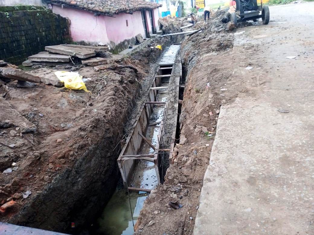 प्राक्कलन के अनुरूप नही कराया जा रहा है नाली का निर्माण कार्य एक-एक फीट दूरी पर सरिया लगाने के आरोप