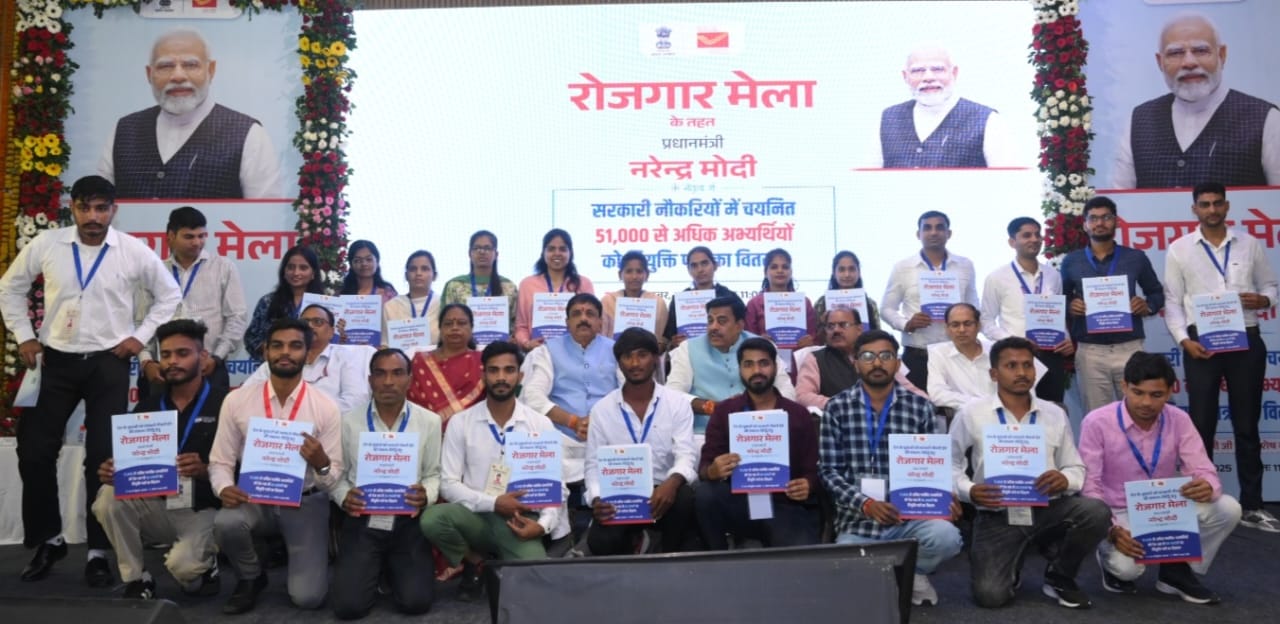 डाक विभाग, भारत सरकार द्वारा आज 17वें “रोजगार मेला” का आयोजन किया गया। इस मेले में विभिन्न केंद्रीय कार्यालयों जैसे डाक विभाग, रेल मंत्रालय, गृह मंत्रालय, स्वास्थ्य एवं परिवार कल्याण विभाग, उच्च शिक्षा विभाग, एम्स, गृह विभाग जैसे विभागों एवं केंद्र सरकार के विभिन्न सार्वजनिक उपक्रमों के लिए देशभर में चयनित 51 हज़ार से अधिक अभ्यर्थियों को नियुक्ति पत्र प्रदान किए गए। इस अवसर पर भोपाल में आयोजित इस मेले में विभिन्न केंद्रीय विभागों और उपक्रमों के 248 चयनित अभ्यर्थियों को नियुक्ति पत्र प्रदान किए गए।