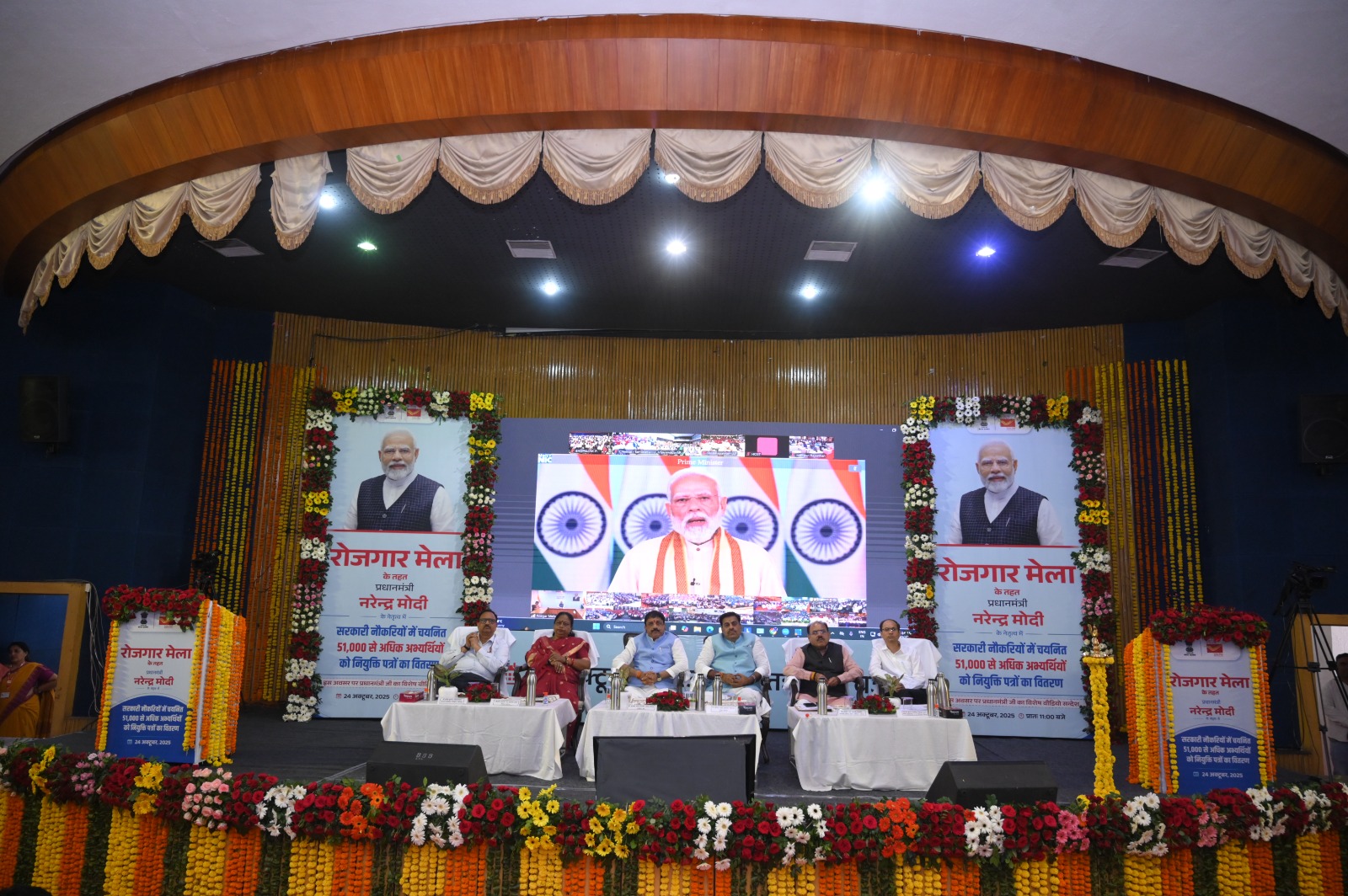भोपाल सहित 40 शहरों में आयोजित इस मेले का शुभारंभ प्रधानमंत्री श्री नरेंद्र मोदी जी के संदेश के माध्यम से किया गया। इस अवसर पर प्रधानमंत्री श्री नरेंद्र मोदी जी ने अभ्यर्थियों और उनके परिवार को बधाई देते हुए कहा कि ‘यह नियुक्ति नहीं बल्कि देश सेवा करने का अवसर है। उन्होने आशा व्यक्त की कि आप ईमानदारी तथा ‘नागरिक देवो भवः’ के लक्ष्य को ध्यान में रखकर कार्य करेंगे तथा विकसित भारत के सपने को साकार करेंगे।’ प्रधानमंत्री ने कहा कि वर्तमान में भारत विश्व में सबसे बड़ा युवा देश है और इन मेलों के माध्यम से अब तक लगभग 11 लाख से अधिक युवाओं को भारत सरकार के विभिन्न मंत्रालयों एवं विभागों में रोजगार प्रदान किया गया है।
